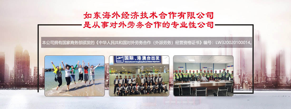 是從事對外勞務合作的專業(yè)性公司,本公司擁有國家商務部頒發(fā)的《中華人民共和國對外勞務合作(外派勞務)經(jīng)營資格證書》編號:LW320020100014。從一九九五年開展勞務合作以來,積極開拓進取,先后向日本、加拿大、新加坡、韓國等國家派遣勞務人員近1萬5千余人。勞務合作行業(yè)主要有服裝(車工、裁剪、整燙、制板、維修、車間管理)、針織業(yè)(織布、漂染、針織、橫機、套口羊毛衫工)、建筑工程(技術人員、瓦工、鋼筋工、拌灰工、木工、油漆工、電工、鋁合金工、水暖工等)、機械工(銑床、車床、沖床、鉆床、鑄造等)電焊工(壓力容器、亞弧焊、建筑設備安裝、船舶、管道工)、遠洋捕撈(職務船員、普通漁工、水手),高級廚師(川菜、粵菜、京菜、淮揚菜)、電子裝配、園藝、蔬菜種植、桑蠶飼養(yǎng)、海、淡水養(yǎng)殖、護士、翻譯(英語、日語、韓國)等,日本辦事處設在日本東京、廣島主要負責管理和服務日本研修生及貿(mào)易方面的聯(lián)絡工作,國外辦事處和中國公司現(xiàn)有工作人員25人,專職勞務工作人員10人,從事勞務行業(yè)均10年以上,翻譯、培訓教師5人,外教2人,會計3人,業(yè)務人員5人。